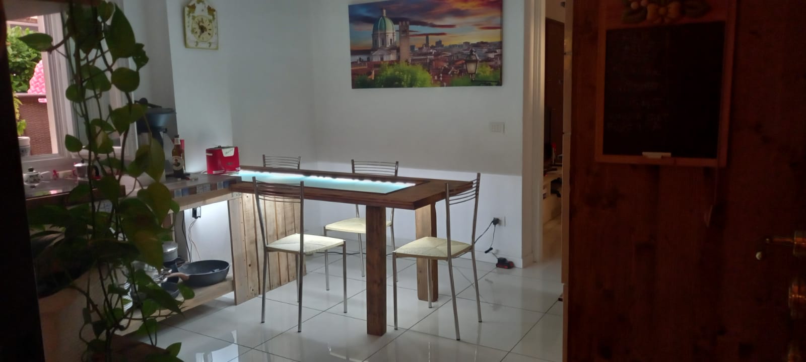 Questo tavolo lo abbiamo fatto con una porta recuperata, in un blog troverete tutti i lavori fatti passo, passo...